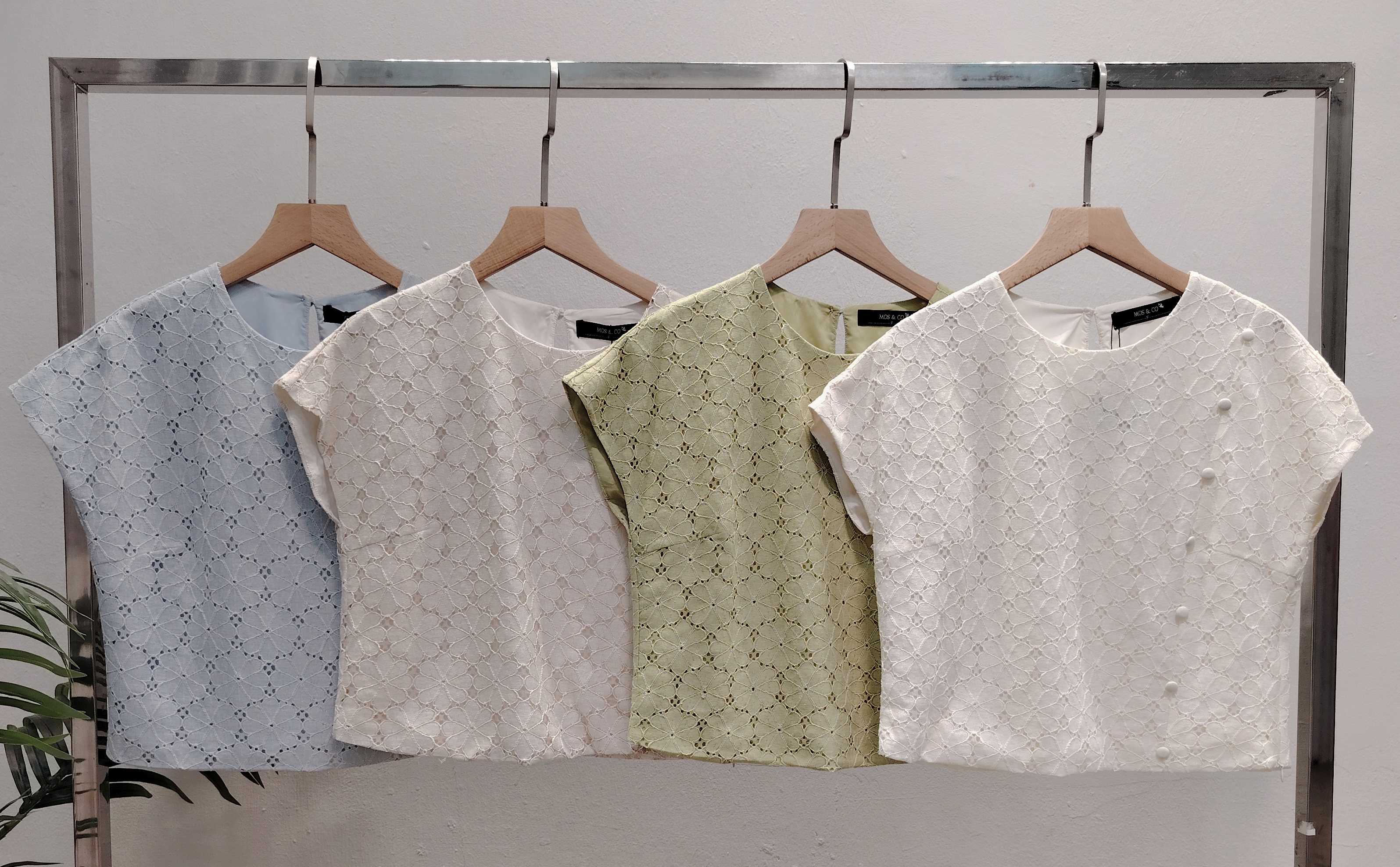 MBL-10226 FREE SIZE New fashion new Chinese style design sense out of the sleeve round neck left side zipper design loose and thin comfortable breathable versatile lace top women 新款时尚新中式设计感出袖圆领左侧拉链设计宽松显瘦舒适透气百搭蕾丝上衣女