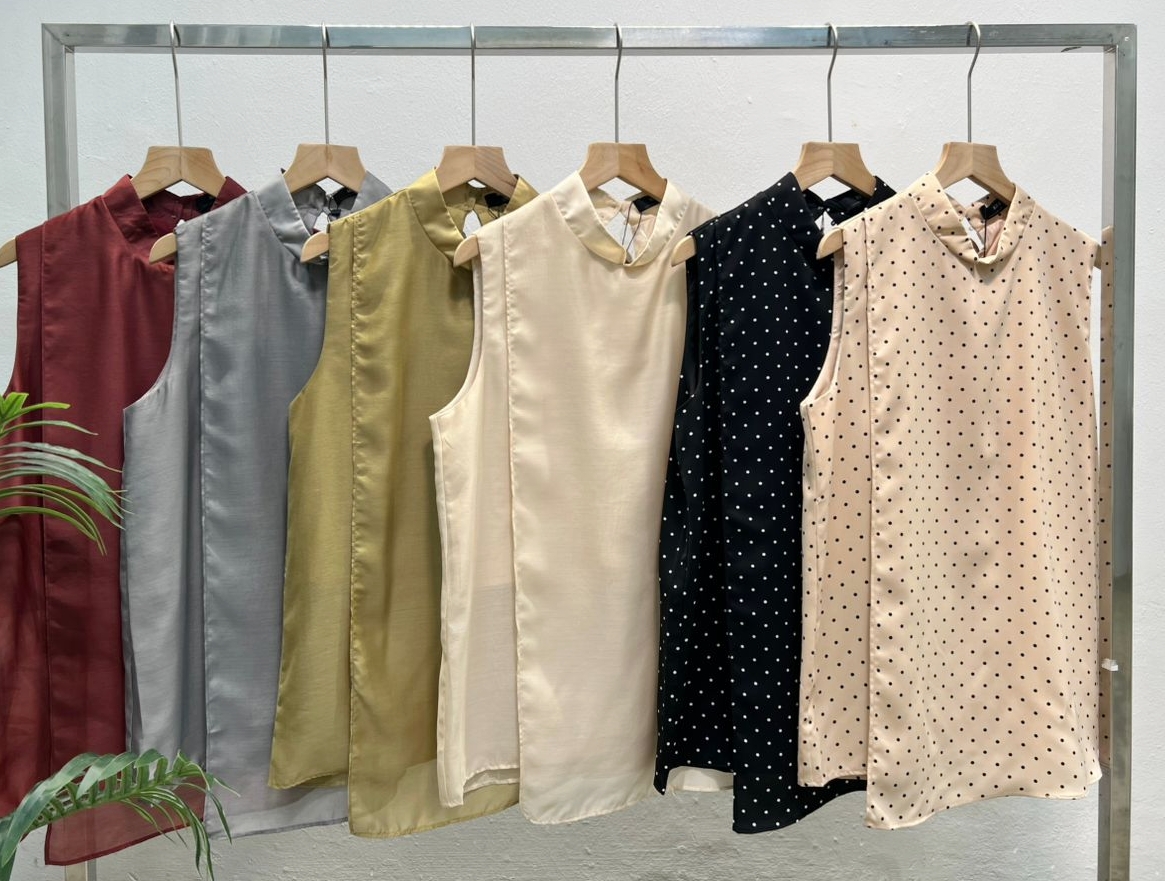 25025 Oriental Polka Dot Sleeve Less Blouse