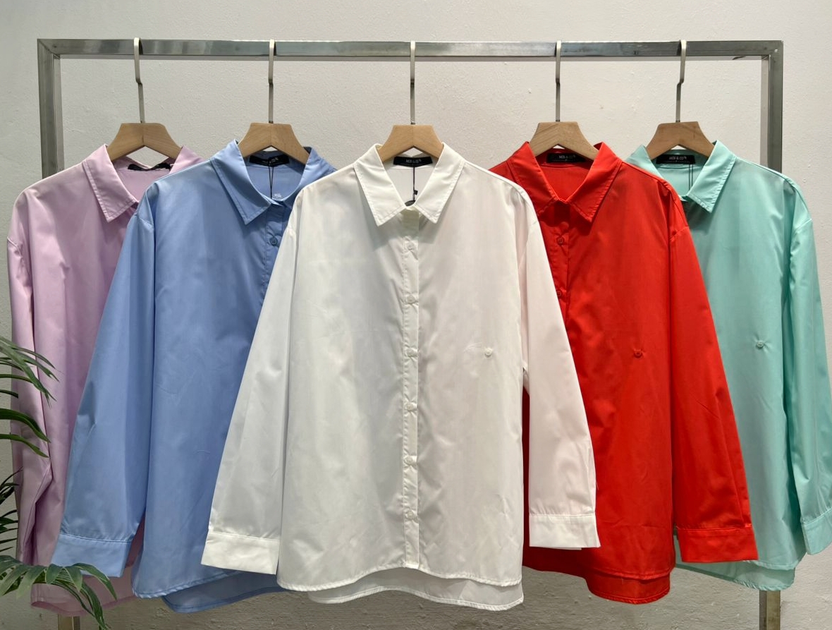 MBL-10227 FREE SIZE New Korean version of fashion temperament design sense long-sleeved lapel live row buckle loose thin comfortable simple sweet color matching shirt top women 新款韩版时尚气质设计感长袖翻领活排扣宽松显瘦舒适简约甜美色系百搭衬衫上衣女