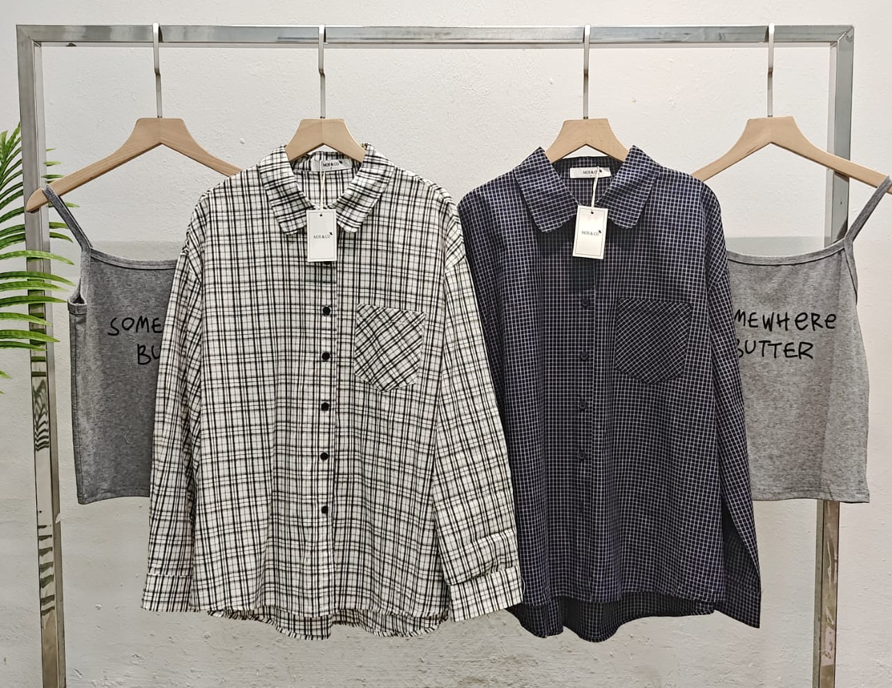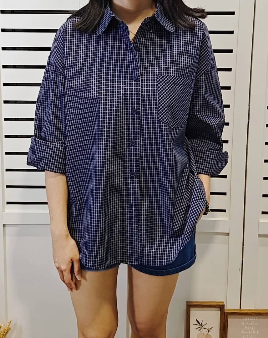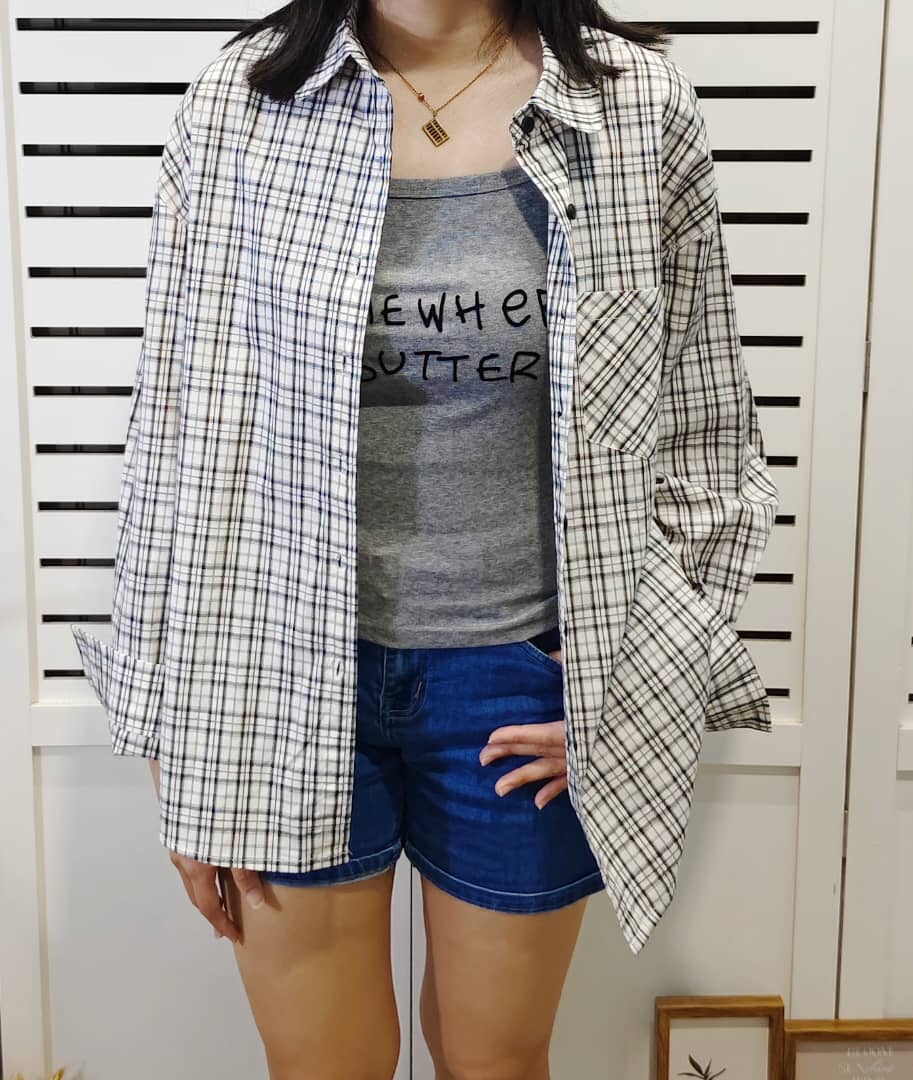 MBL-10079 FREE SIZE New Korean version of the summer fashion temperament casual design sense long-sleeved square collar live row buckle design loose thin comfortable plaid shirt vest suit versatile women 夏季新款韩版时尚气质休闲设计感长袖方领活排扣设计宽松显瘦舒适格子衬衫背心套装百搭女