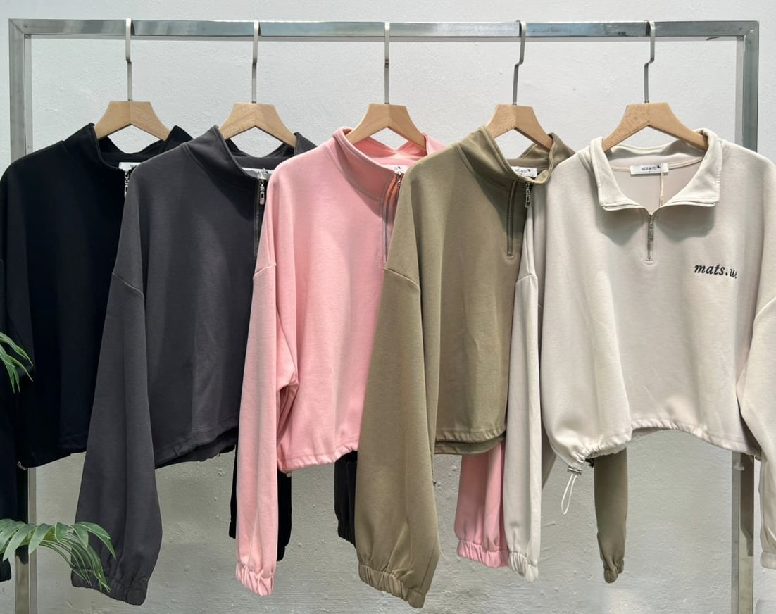 MBL-10247 FREE SIZE New Korean fashion temperament design long-sleeved half-high collar half-zipper design drawstring loose slimming casual versatile top women 新款韩版时尚气质设计感长袖半高领半拉链设计抽绳宽松显瘦休闲百搭上衣女