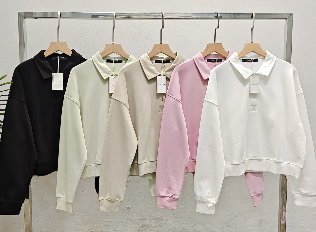 MTS-9935 FREE SIZE Summer new Korean simple design sense long-sleeved lapel live row buckle casual loose slimming comfortable versatile top women 夏季新款韩式简约设计感长袖翻领活排扣休闲宽松显瘦舒适百搭上衣女