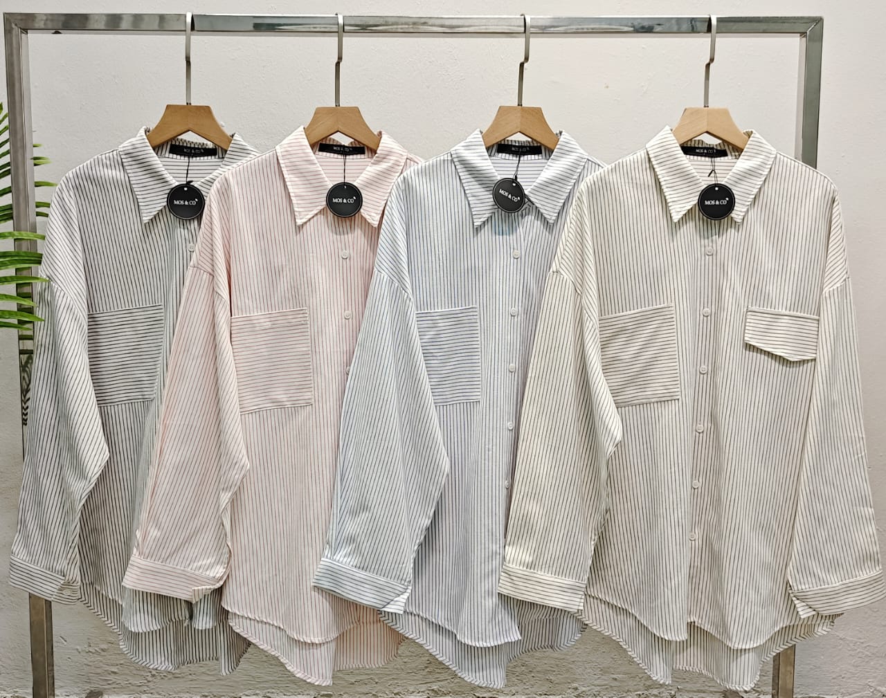 MBL-10051 FREE SIZE Summer new Korean fashion temperament casual design long-sleeved square collar live row buckle design loose and thin comfortable striped shirt casual versatile women 夏季新款韩版时尚气质休闲设计感长袖方领活排扣设计宽松显瘦舒适条纹衬衫休闲百搭女