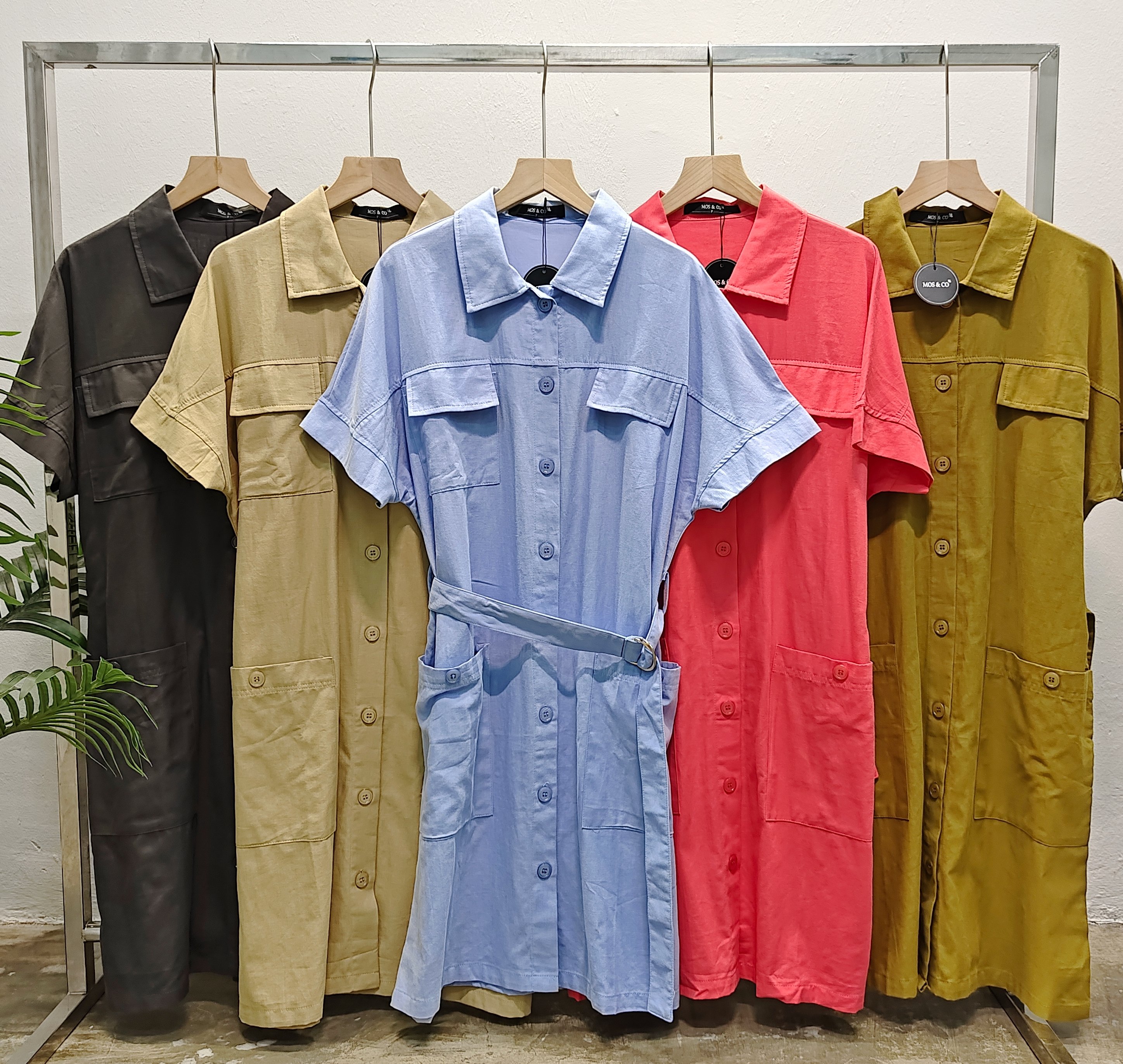 MBL-10055 FREE SIZE Summer new Korean version of the fashion design sense lapel medium and long sleeves live row buckle both sides of the pocket loose thin shirt versatile skirt women 夏季新款韩版时尚设计感翻领中长袖活排扣两侧口袋宽松显瘦衬衫百搭裙女