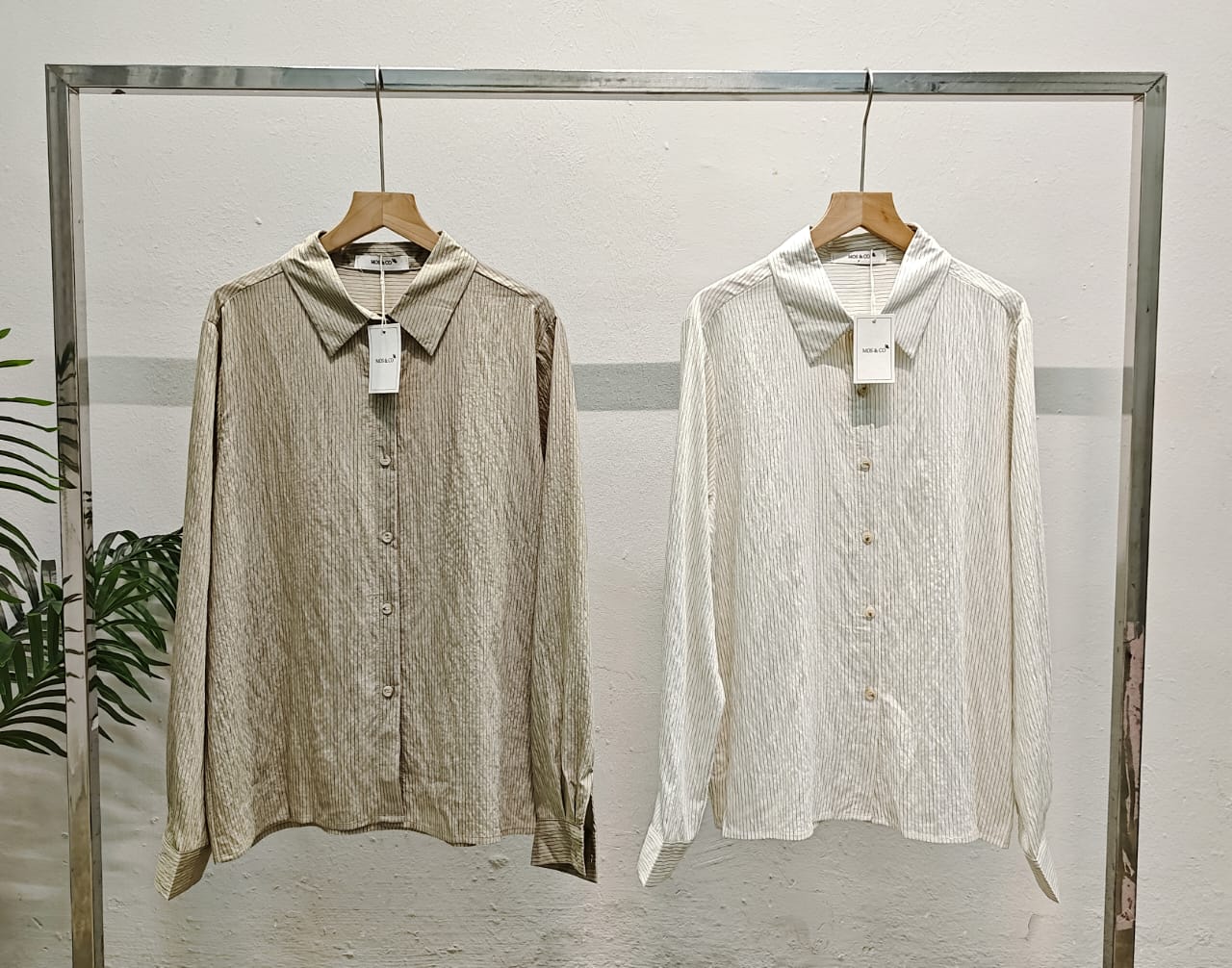 MBL-10112 FREE SIZE Summer new Korean version of the design sense of long-sleeved lapel live row buckle loose thin comfortable versatile shirt women 夏季新款韩版设计感长袖翻领活排扣宽松显瘦舒适百搭衬衫女