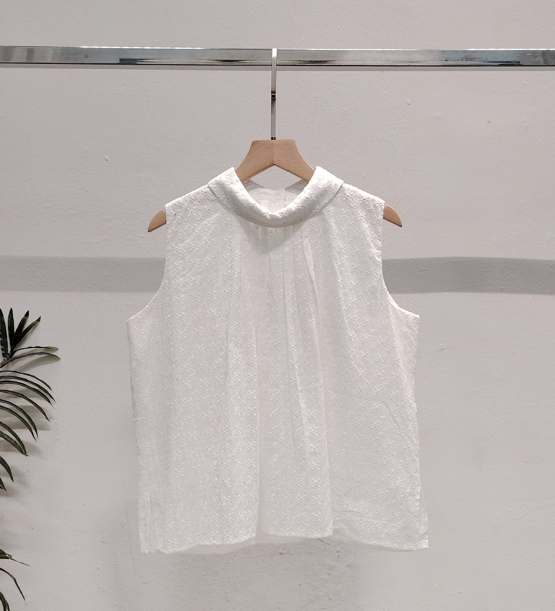 MSL-10198 FREE SIZE New French lace hollow fashion design sleeveless round neck slim comfortable temperament versatile top women 新款法式蕾丝通花时尚设计感无袖圆领显瘦舒适气质百搭上衣女