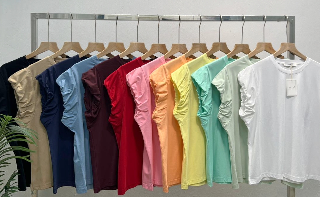 M2889 Wrinkled Sleeve Round Neck T-Shirt