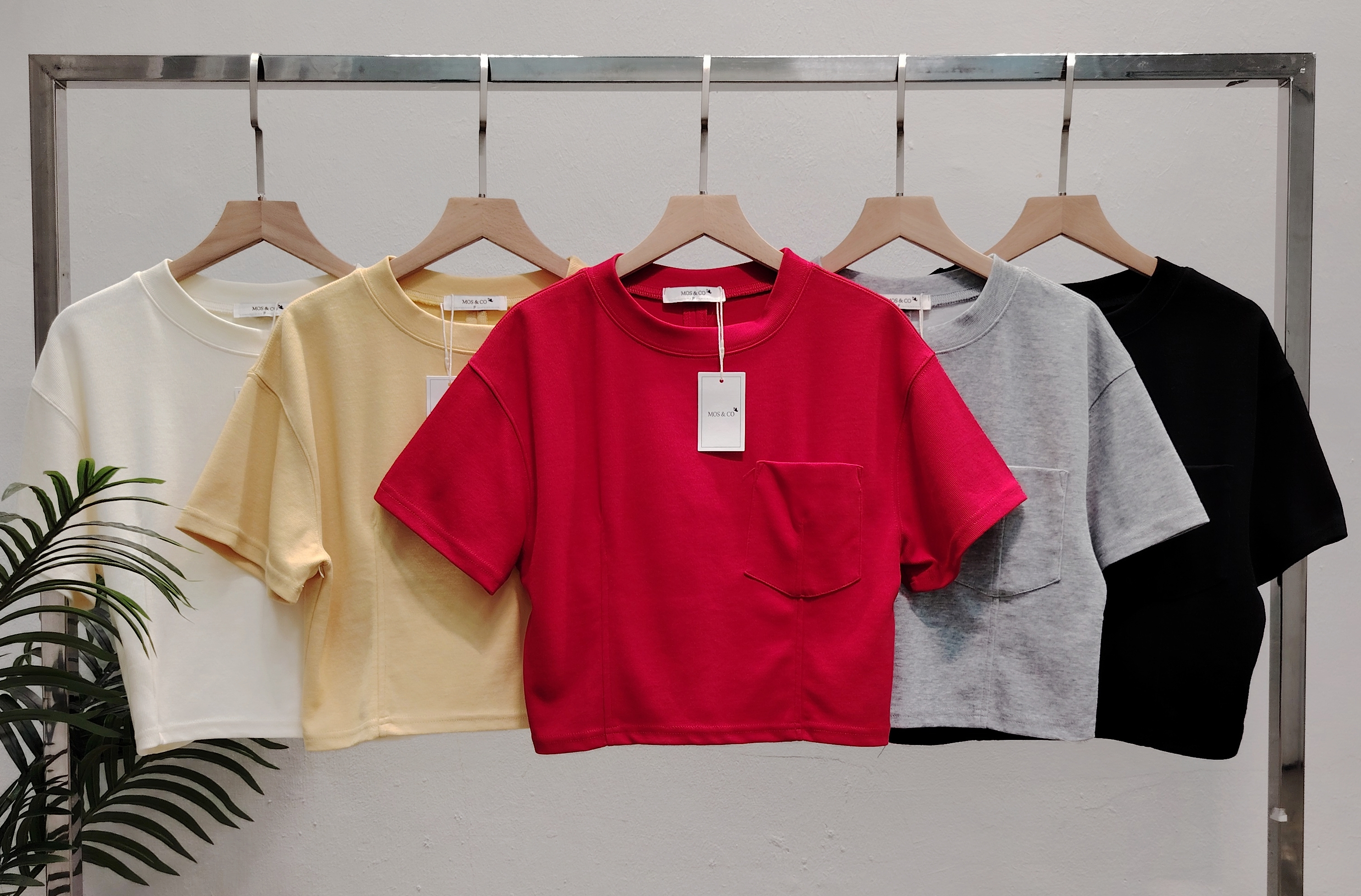 MTS-9896 FREE SIZE Summer new Korean-style fashionable and elegant design short-sleeve round neck simple slim fit, flattering, waist-cinching, back invisible zipper design, versatile cropped top for women. 夏季新款韩式时尚气质设计感短袖圆领简约修身显瘦下摆收腰后背隐形拉链设计百搭短版上衣女