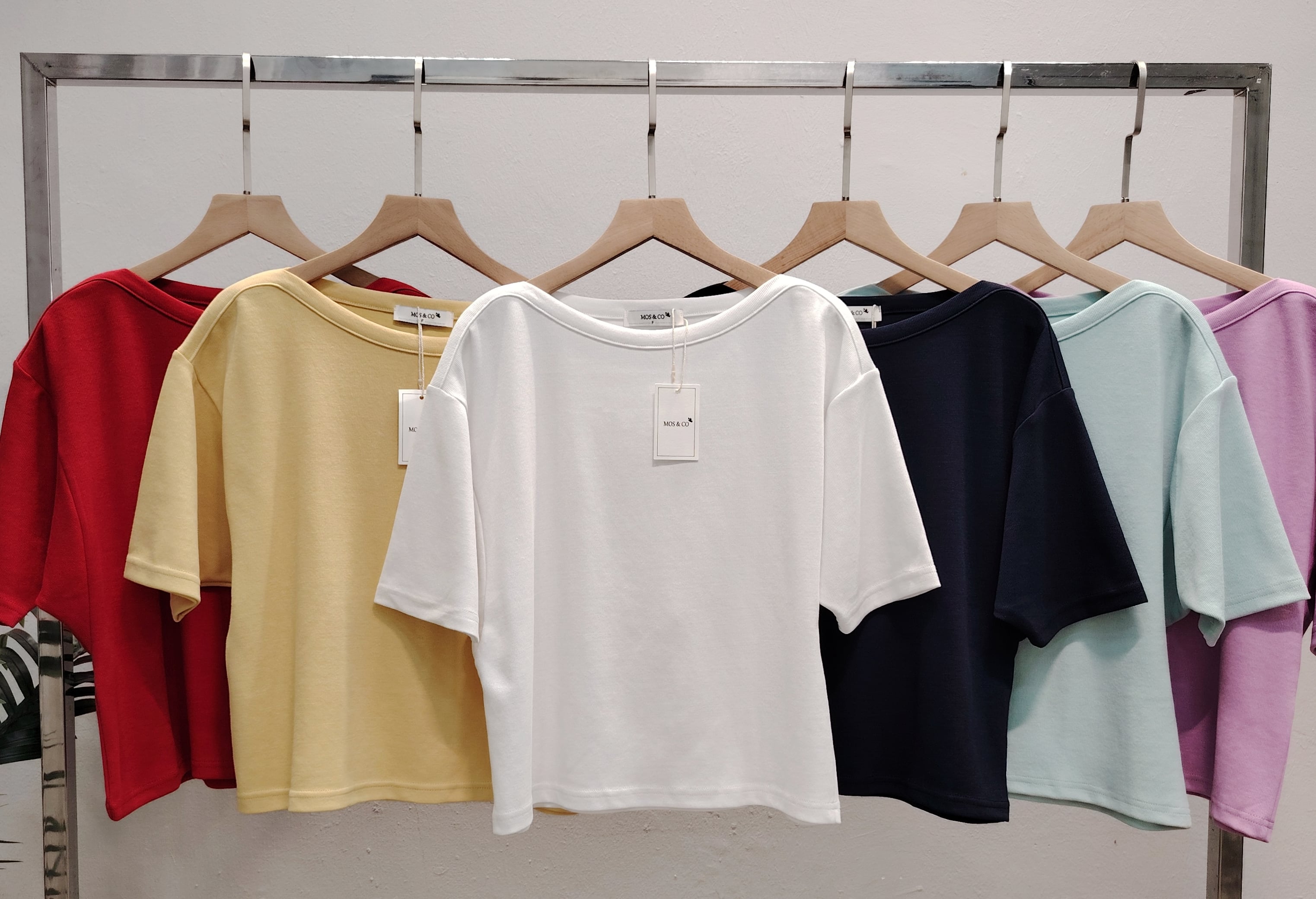 MTS-10266 FREE SIZE New Korean version of elegant temperament design short-sleeved flat shoulder loose slimming comfortable soft simple versatile top women 新款韩版优雅气质设计感短袖平肩宽松显瘦舒适柔软简约百搭上衣女