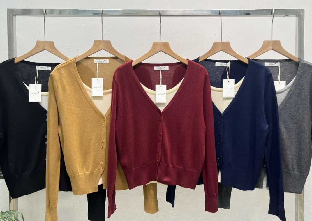 MKW-10241 FREE SIZE New Korean casual design sense long-sleeved U-neck fake two-piece live row buckle slimming and self-cultivation and temperament versatile top women 新款韩式休闲设计感长袖U领假2件活排扣显瘦修身又气质百搭上衣女