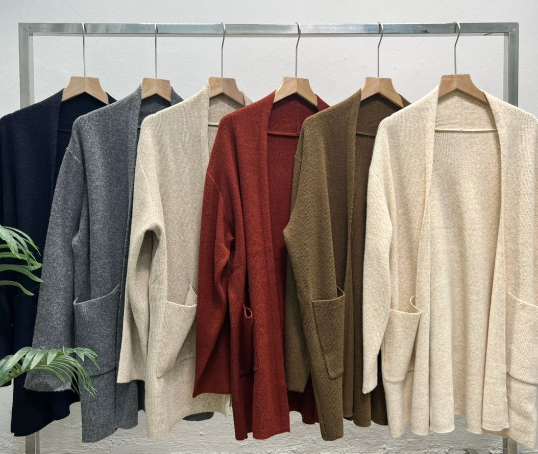 MKW-10259 FREE SIZE New Korean version of fashion atmosphere elegant design sense long-sleeved two side pockets comfortable simple all-match knitted cardigan 新款韩版时尚大气优雅设计感长袖两侧口袋舒适简约百搭针织外套