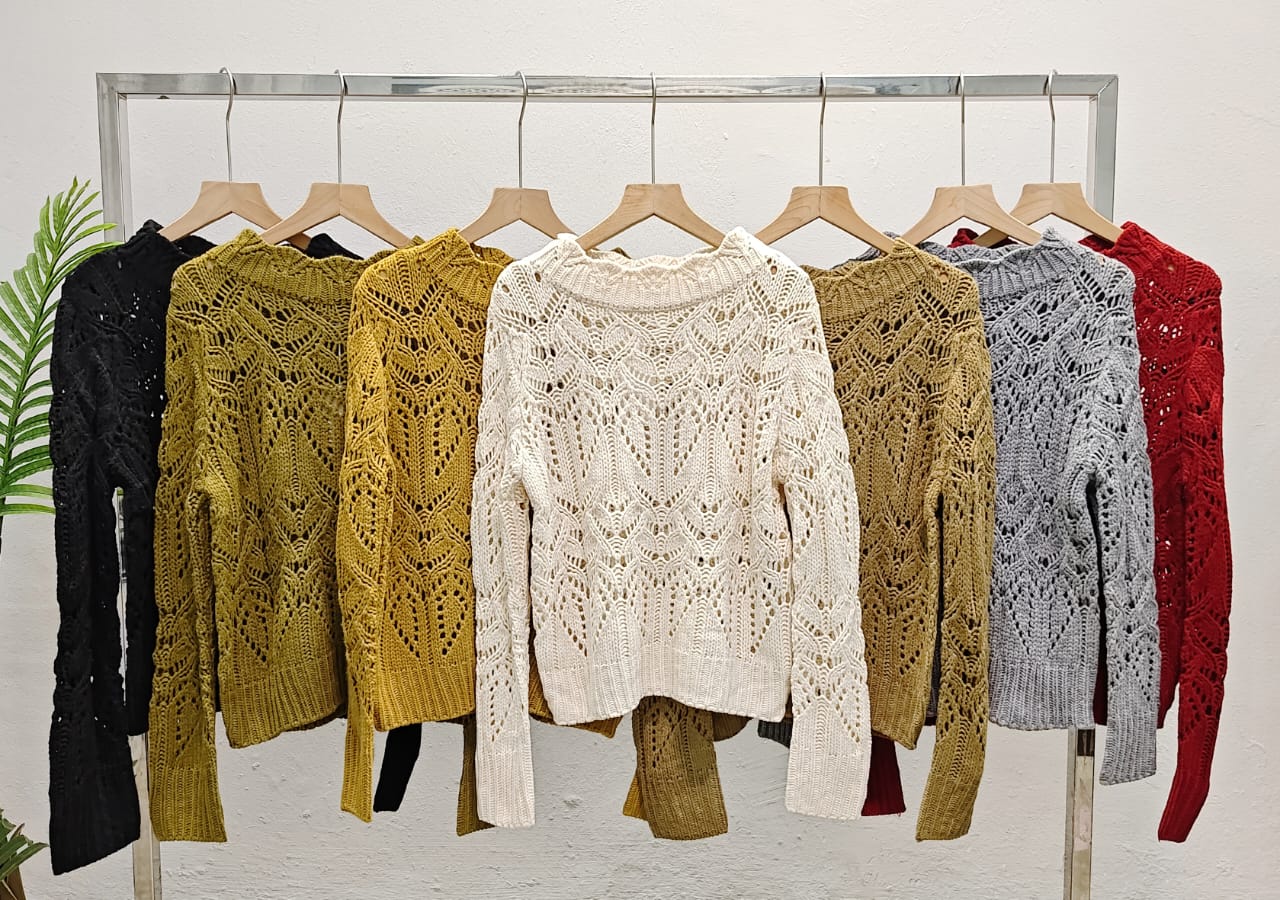 MKW-10073 FREE SIZE Summer new Korean casual simple design sense long-sleeved round neck hollow out slim breathable comfortable all-match hollow knit top women 夏季新款韩式休闲简约设计感长袖圆领镂空显瘦透气舒适百搭镂空针织上衣女