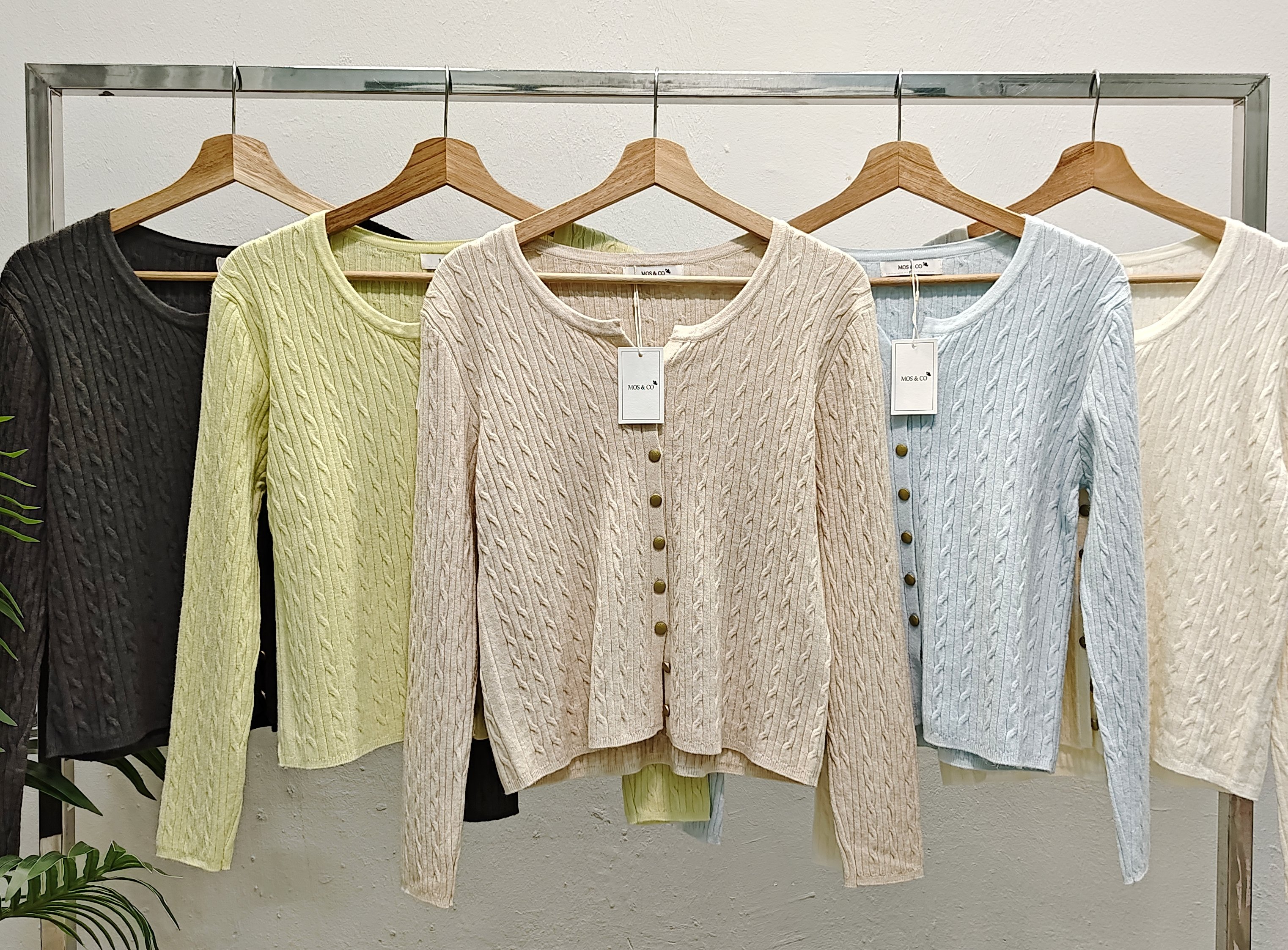 MKW-10072 FREE SIZE Autumn and winter new Korean fashion design sense long-sleeved round neck live row buckle simple loose thin knit cardigan versatile women 秋冬新款韩式时尚设计感长袖圆领活排扣简约宽松显瘦针织外套百搭女