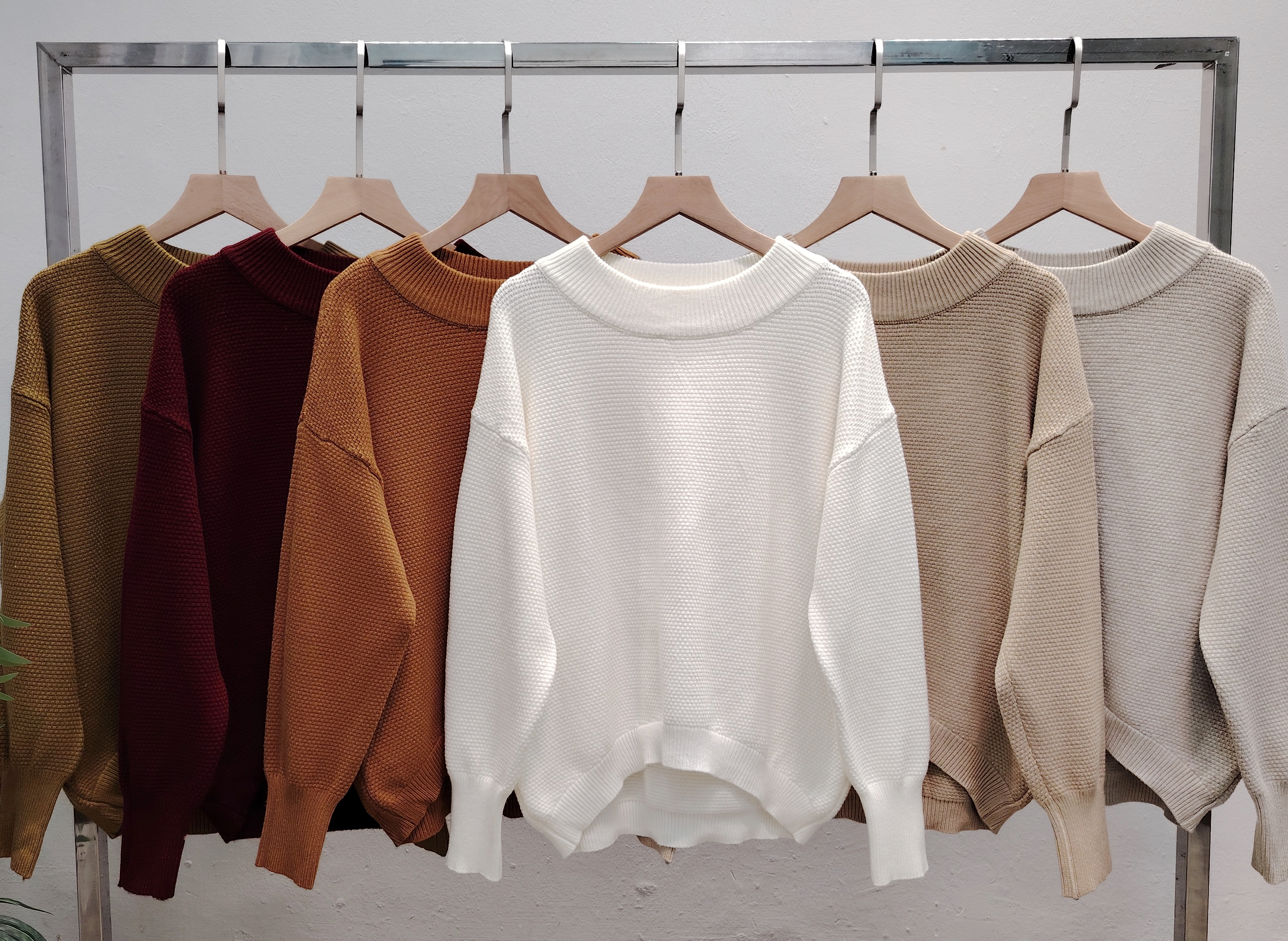 MKW-9781 FREE SIZE New Korean fashion and temperament design long-sleeved round neck loose slimming all-match dark pattern printed grid knitted long-sleeved shirt for women 新款韩式时尚又气质设计感长袖圆领宽松显瘦百搭暗纹印格针织长袖衣女