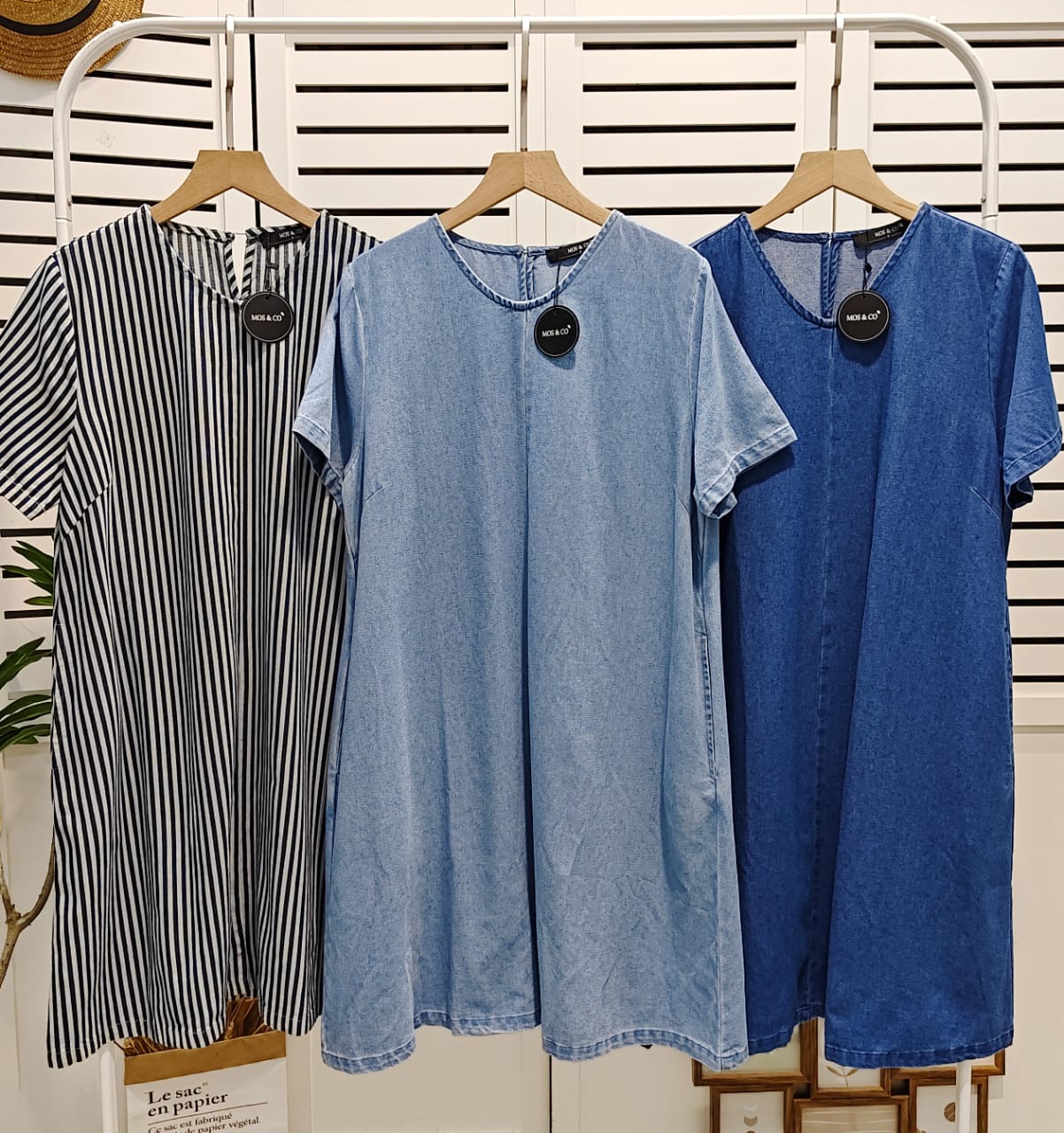 MDS-10124 FREE SIZE Summer new Korean fashion design sense short-sleeved denim dress loose slimming women 夏季新款韩版时尚设计感短袖牛仔连衣裙宽松显瘦女